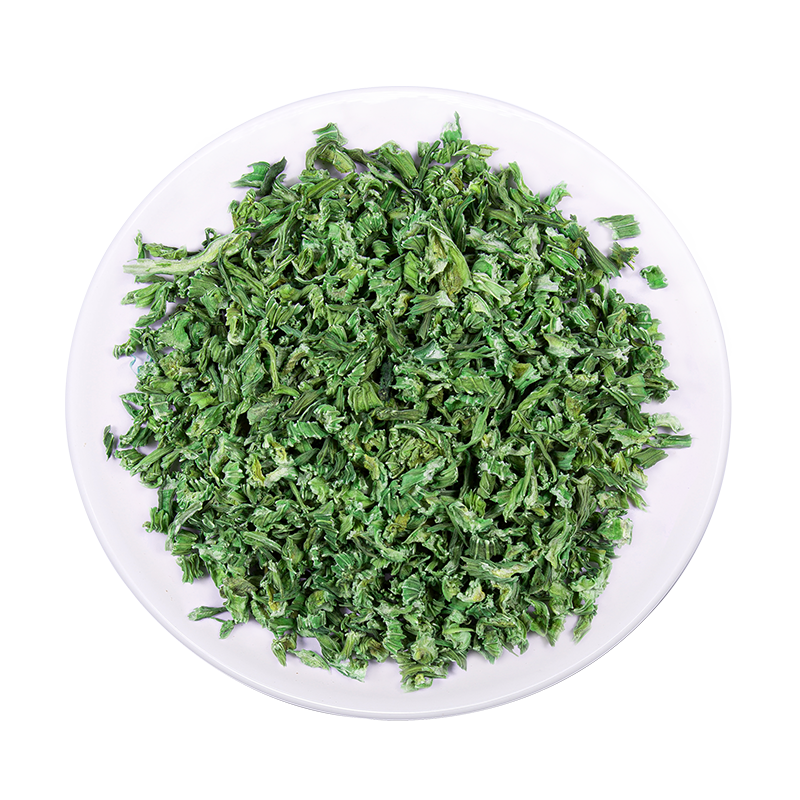 田間直采芹菜經(jīng)分選、清洗、修整、漂燙及烘干加工。處理工序從原料嚴(yán)格清潔、分類管控及HACCP體系執(zhí)行開始,繼而采用刀切或研磨技術(shù)調(diào)整物料粒度。